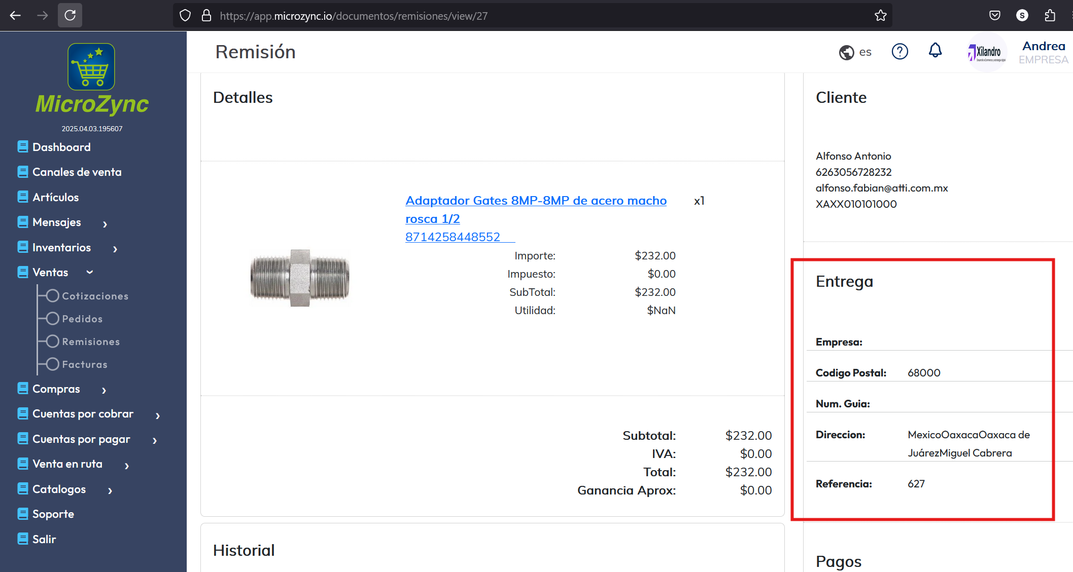 - Le muestra a tus clientes el detalle e historial de sus pedidos realizados.